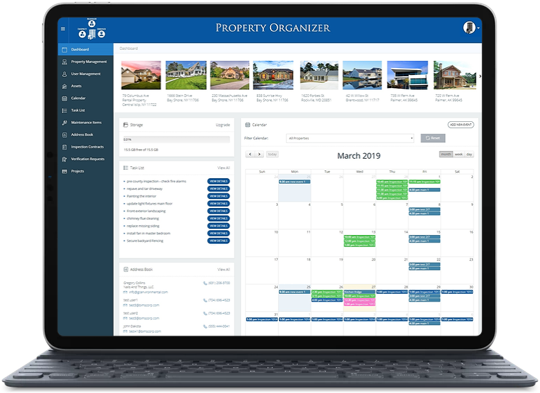 A central calendar stores important dates including warranty expiration’s, scheduled inspections, maintenance items, and tasks across all your properties.